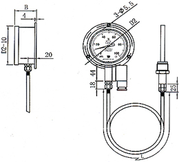 注:1、電接點(diǎn)、熱電阻或溫度變送器的出線裝置一般位于表頭下部,變送器出線裝置采用防爆接線盒出線裝置。 2、嵌裝和掛裝型隔爆溫度計(jì),接線盒必須安放在測溫元件上部,嚴(yán)禁放于表頭下部。 3、嵌裝和掛裝本安防爆溫度計(jì),接線盒一般安放在表頭下部,也可以根據(jù)需要安放在測溫元件上部。 4、當(dāng)儀表量程上限大于等于300℃時(shí),安裝螺紋由不銹鋼材料制造,同時(shí)安裝螺紋至表頭尺寸h=100毫米;當(dāng)儀表量程上限小于300℃時(shí),安裝螺紋由H62黃銅制造h=60毫米。 |